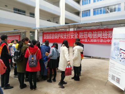 为增强大学生群体的支付安全意识,不断提升其支付风险防范能力,让支付安全知识广泛深入人心, 3月1日,人行凉山中支组织辖区商业银行在西昌学院开展了“加强信息保护和支付安全 防范电信网络欺诈”校园专题宣传活动。通过设置宣传台、发放宣传资料等方式,讲解大学生们关心的话题,接受大学生们的咨询,同时通过学生之间相互传播,进一步扩大校园宣传影响面。